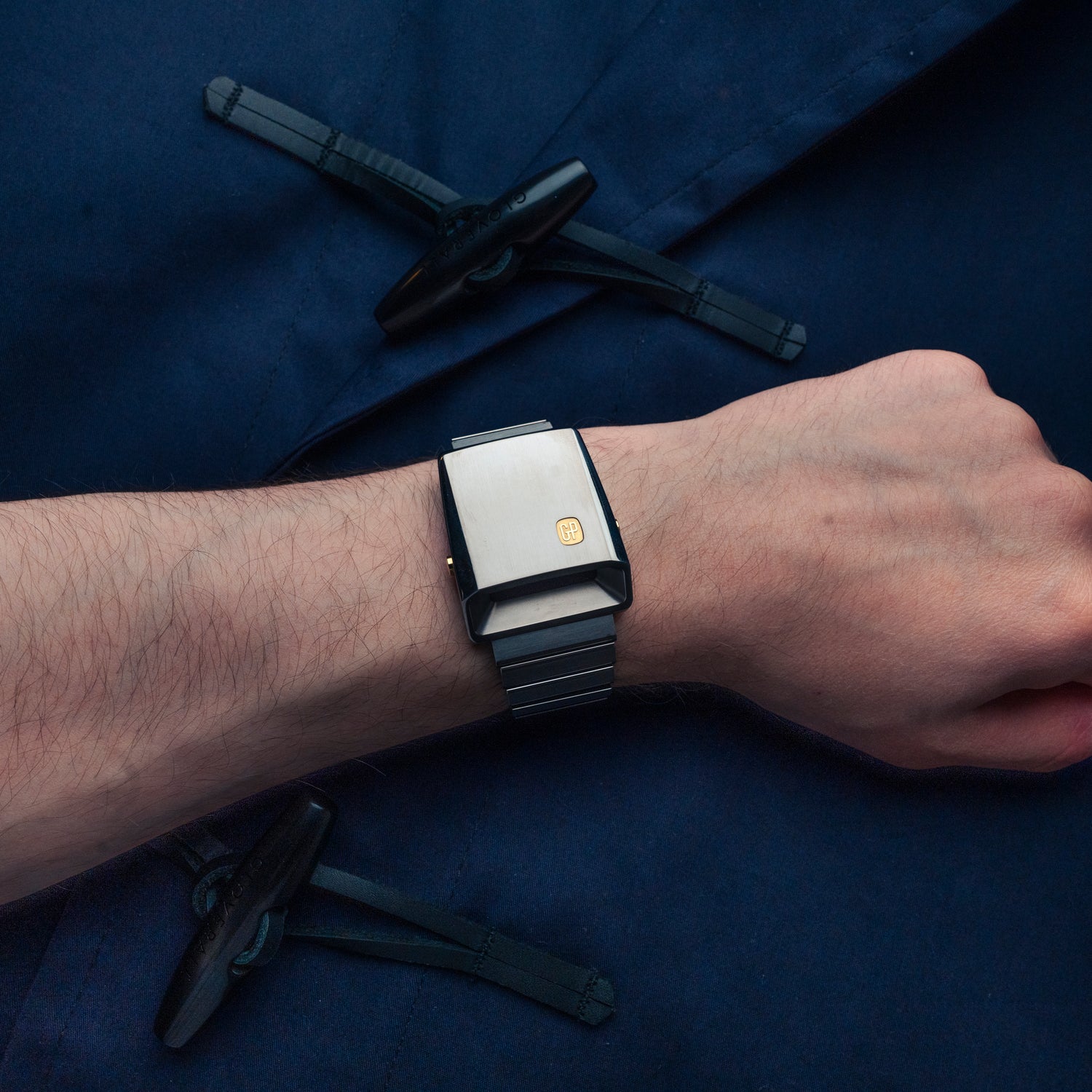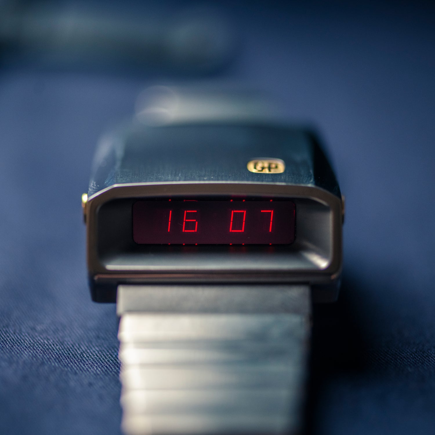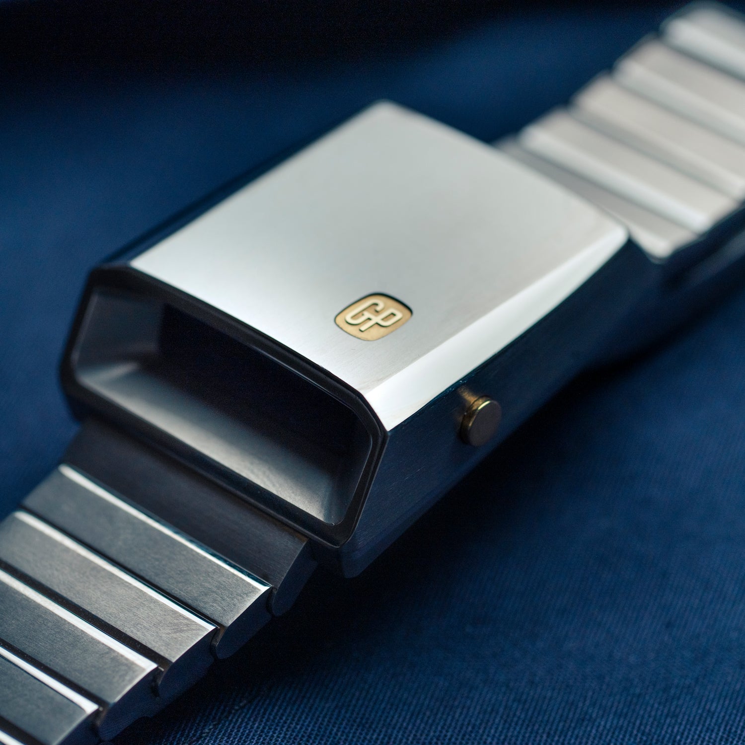 Réédition d’un mythe des années 70, la Girard-Perregaux Casquette 2.0 repousse à nouveau les codes du design horloger. Avec sa silhouette en titane grade 5 et quelques touches en or massif ainsi que son affichage LED rouge orienté vers le conducteur, elle conserve l’esprit résolument futuriste du modèle original de 1976 — une montre pensée pour le XXIᵉ siècle avant l’heure.