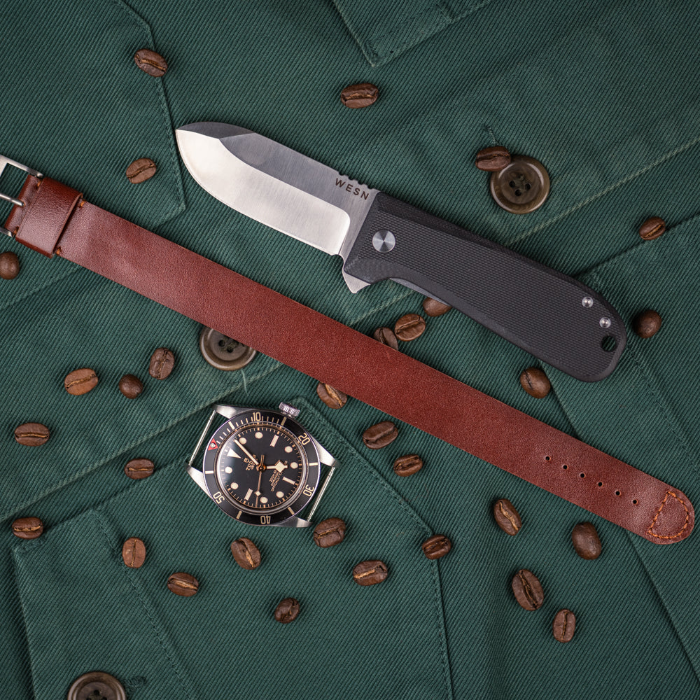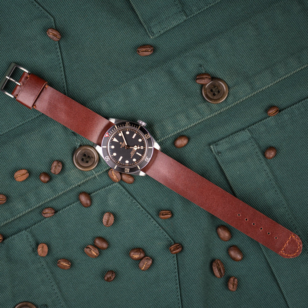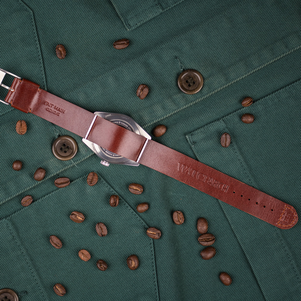Between a NATO strap and a leather strap. The Odysseía strap is a bracelet that brings together the best of both worlds. You benefit from the advantages of NATO, absolute spontaneity and security during your adventures, while retaining the characteristics of high quality leather, i.e. a patina that will appear over time.