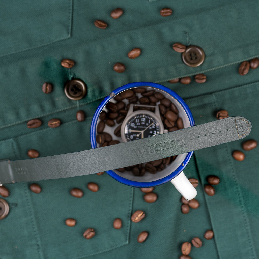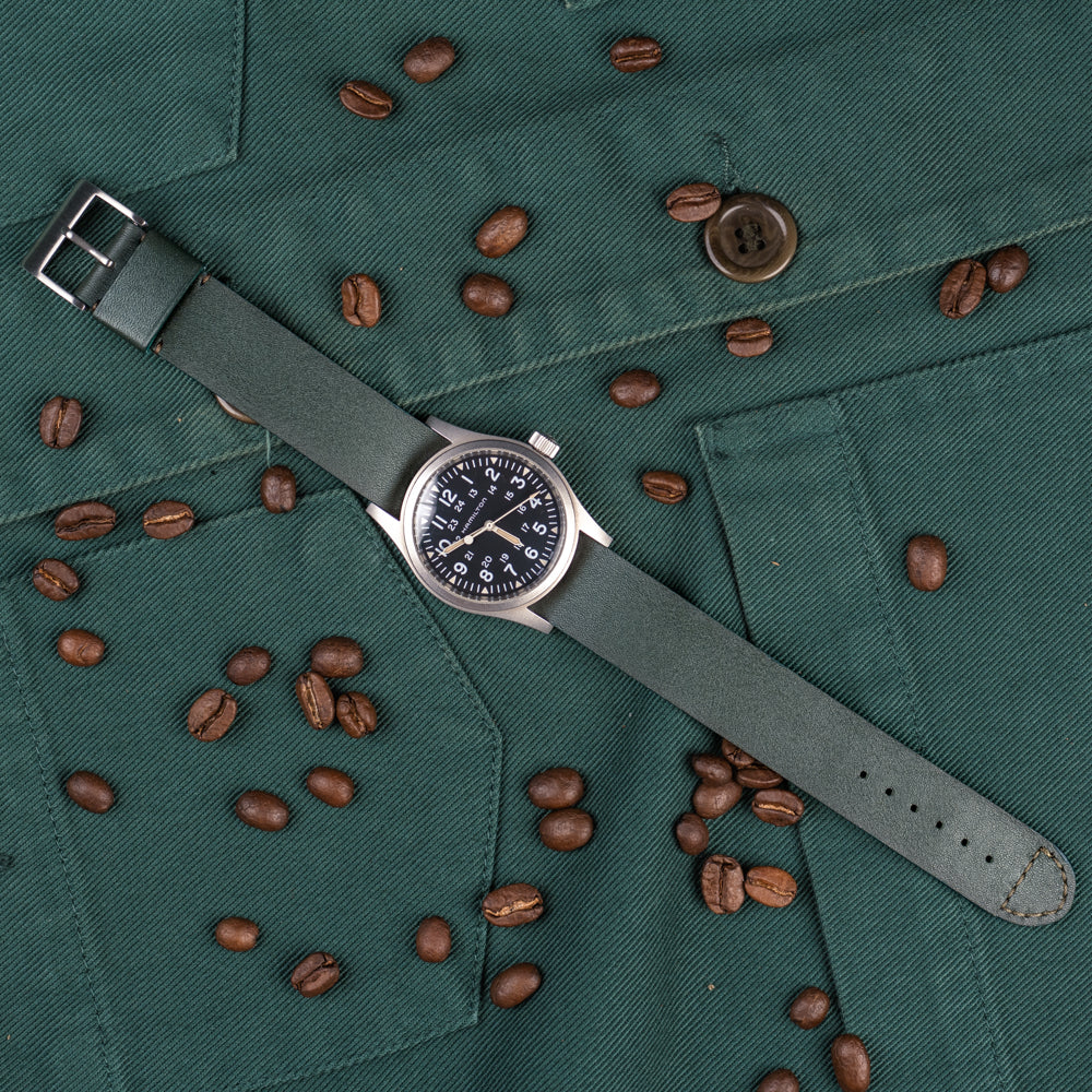 We chose a forest green color, because in our opinion, if there should be only one color for a strap, this is it. The 100% vintage military spirit!
