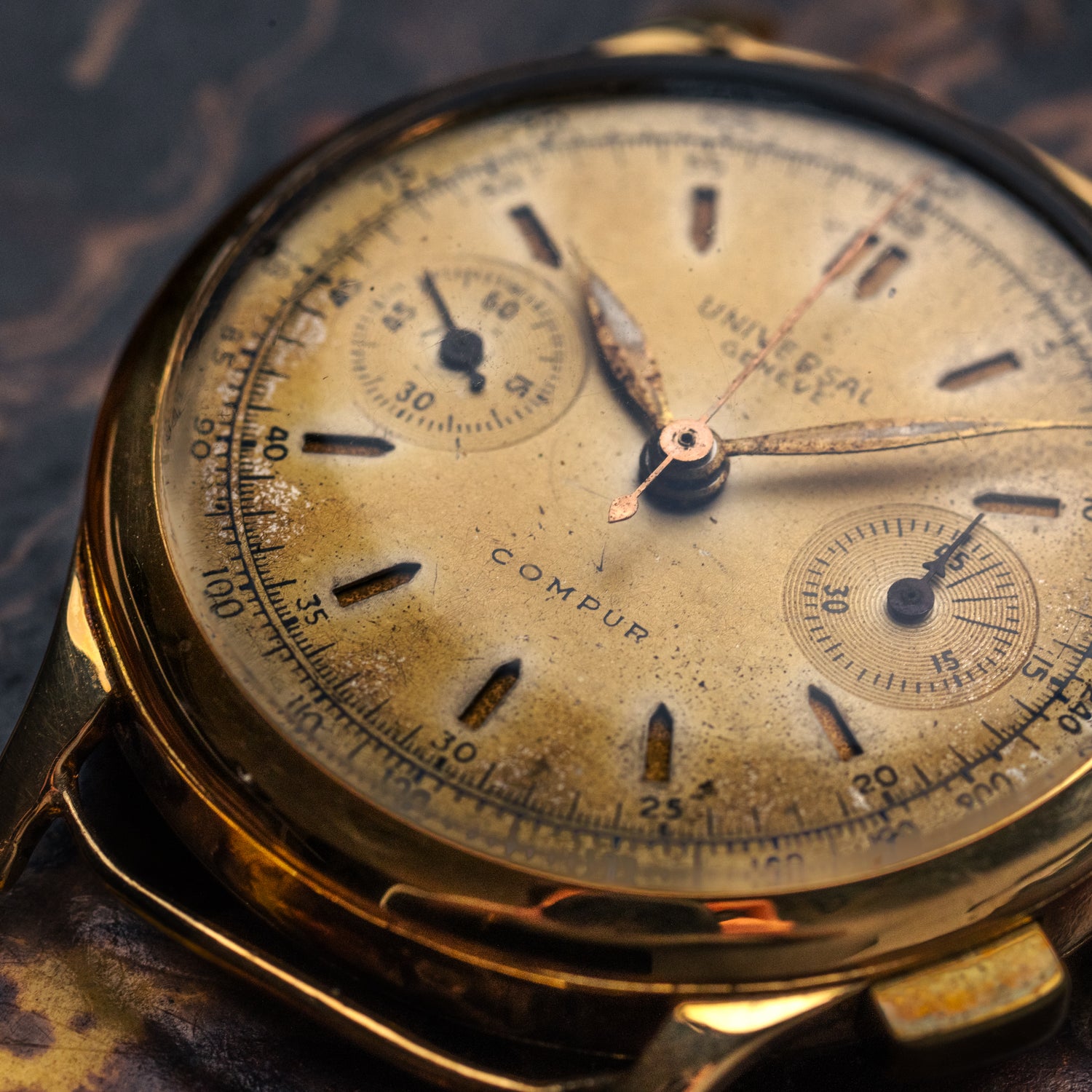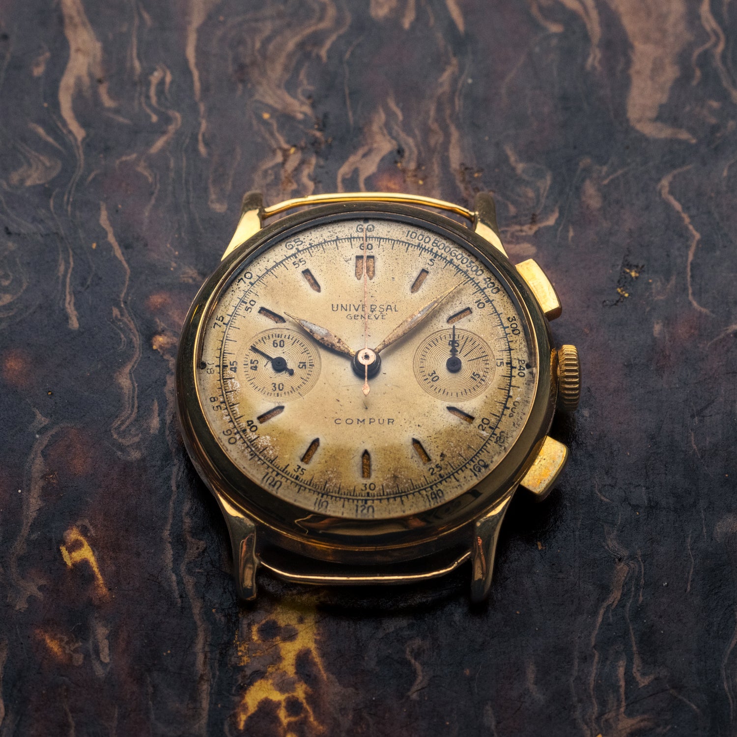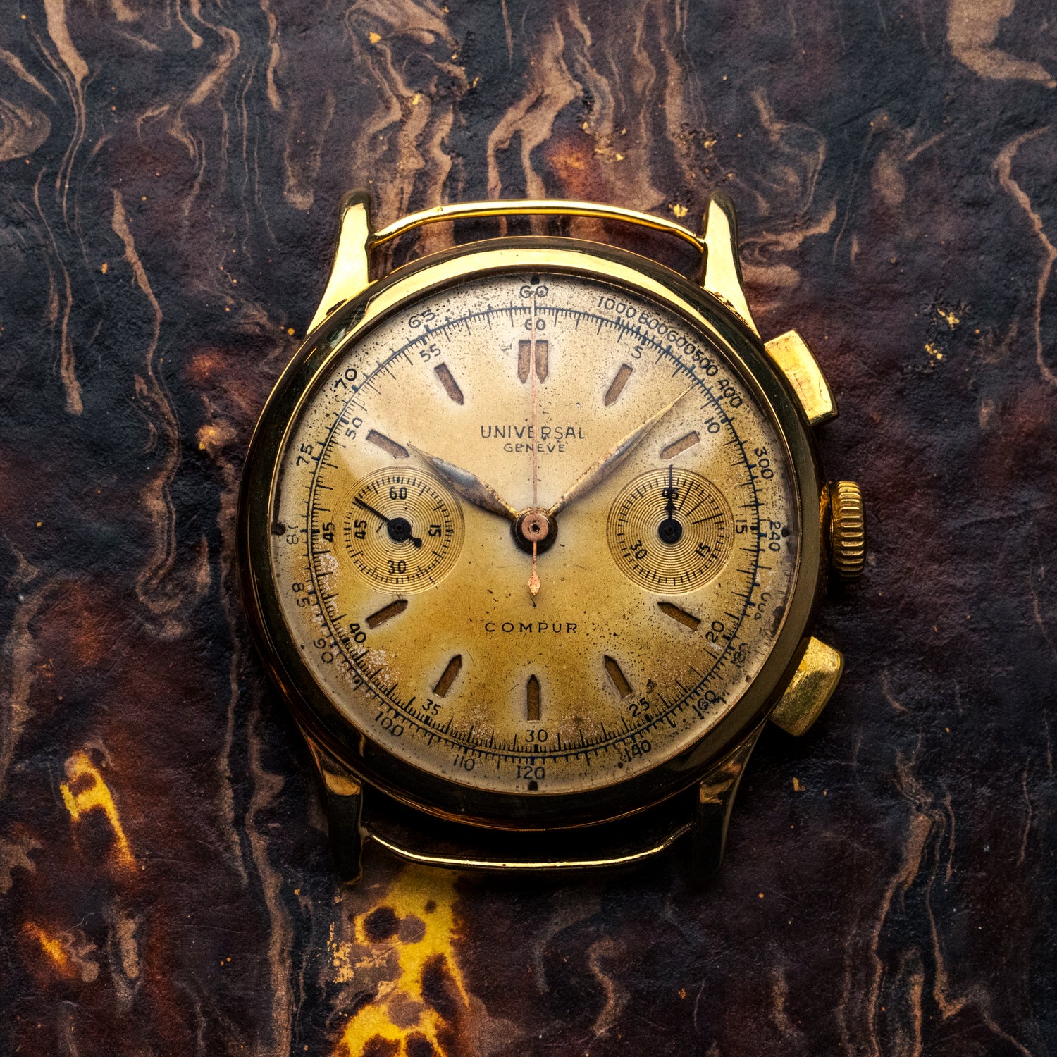 Une fois n'est encore pas coutume, nous avons le privilège de vous proposer une pièce d'exception, une Universal Genève Compur en or 18 carats massif !