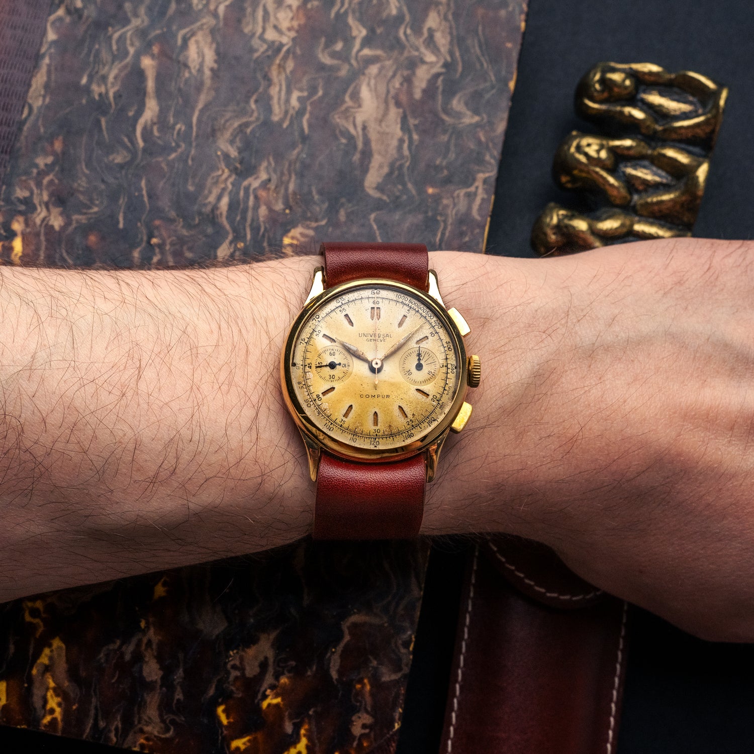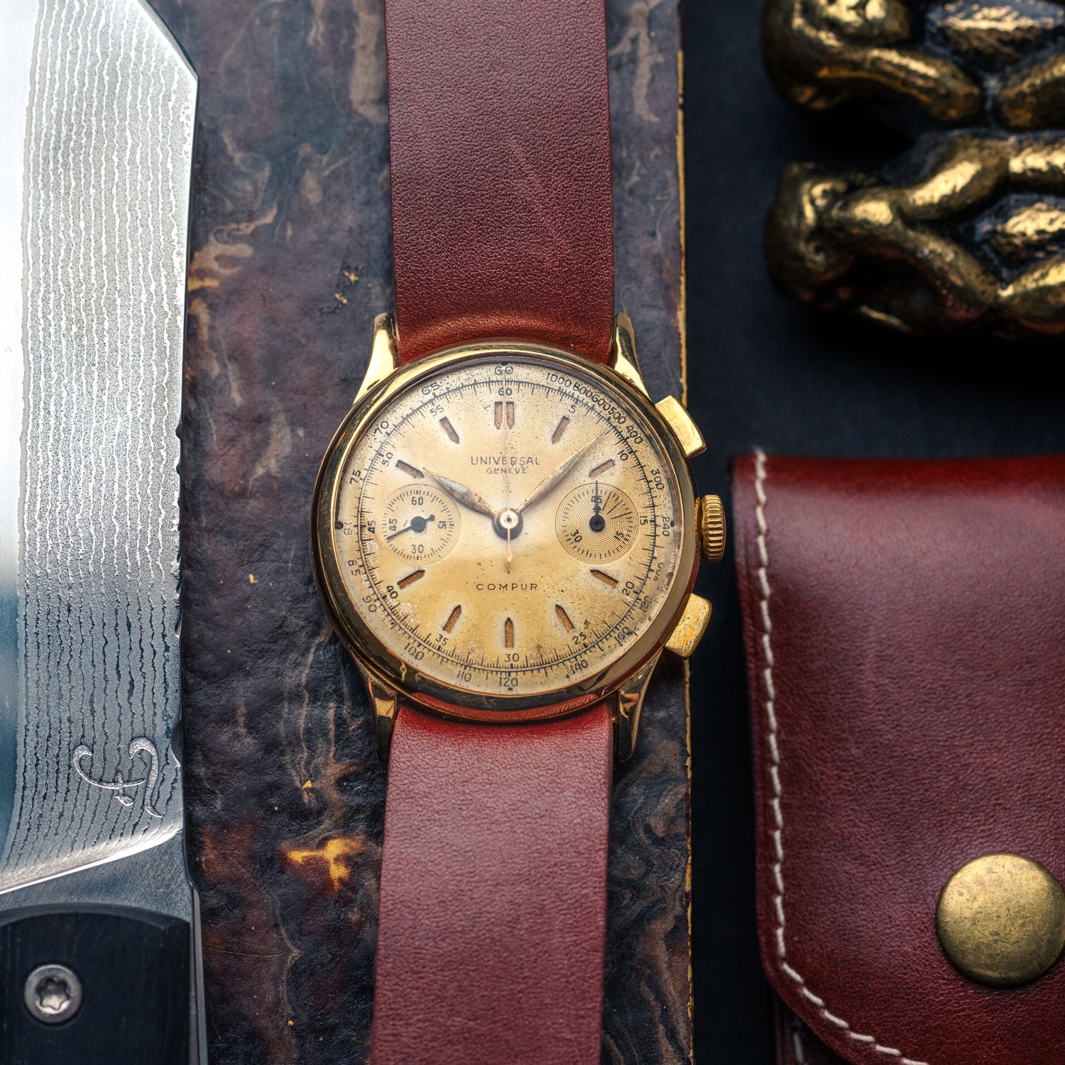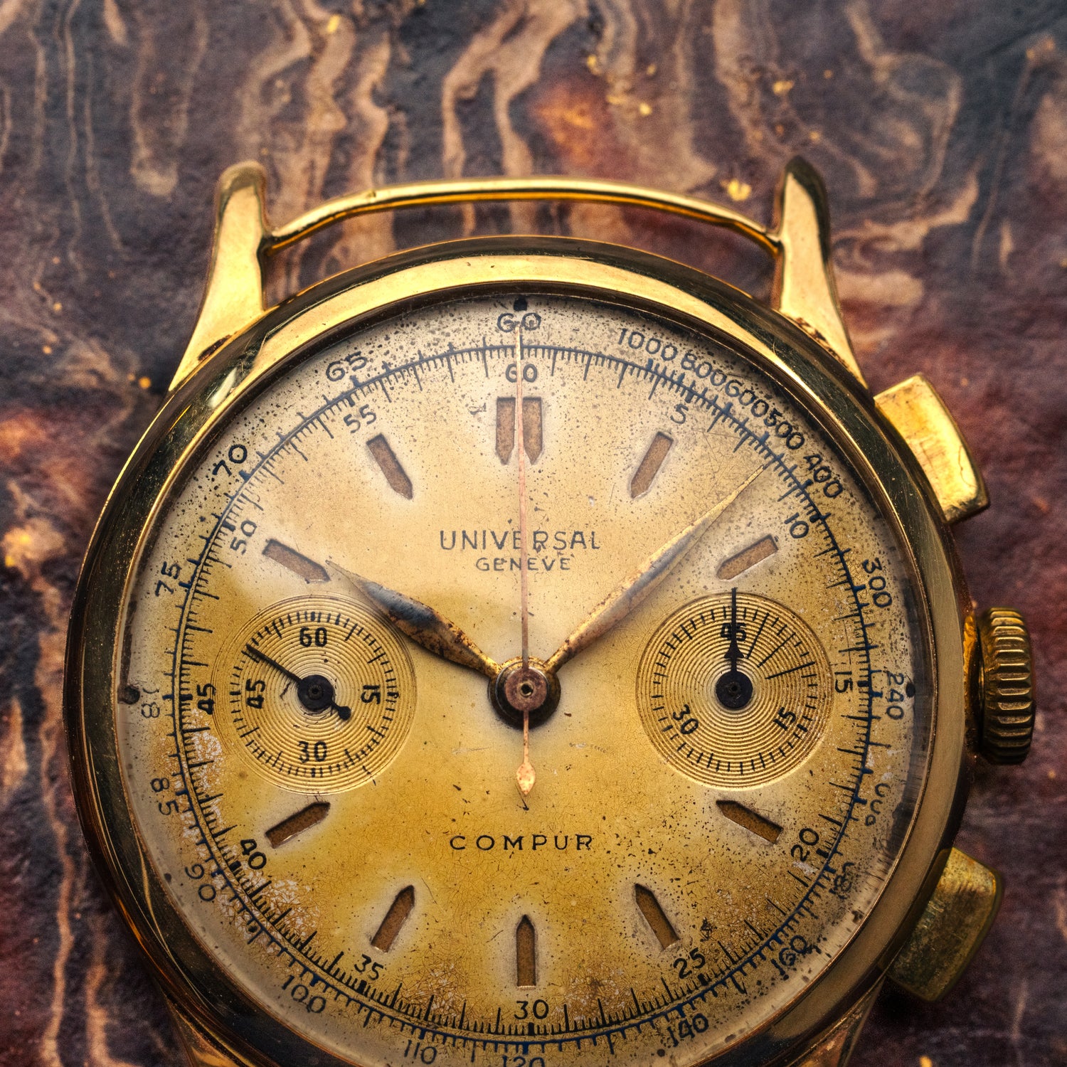 Une fois n'est encore pas coutume, nous avons le privilège de vous proposer une pièce d'exception, une Universal Genève Compur en or 18 carats massif !