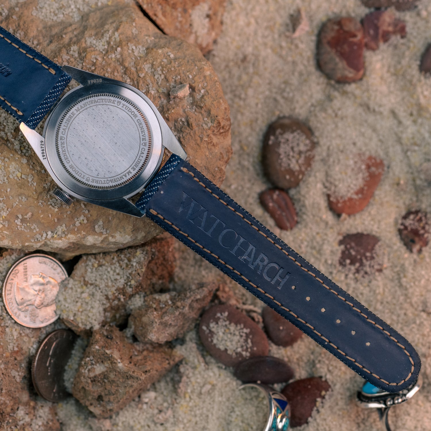 • Logo WatchArch ainsi que la mention "cousu main" sont déposés sur le bracelet