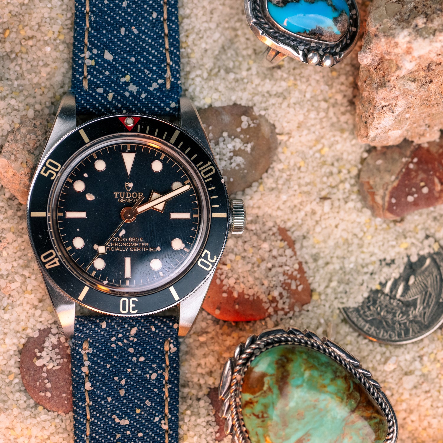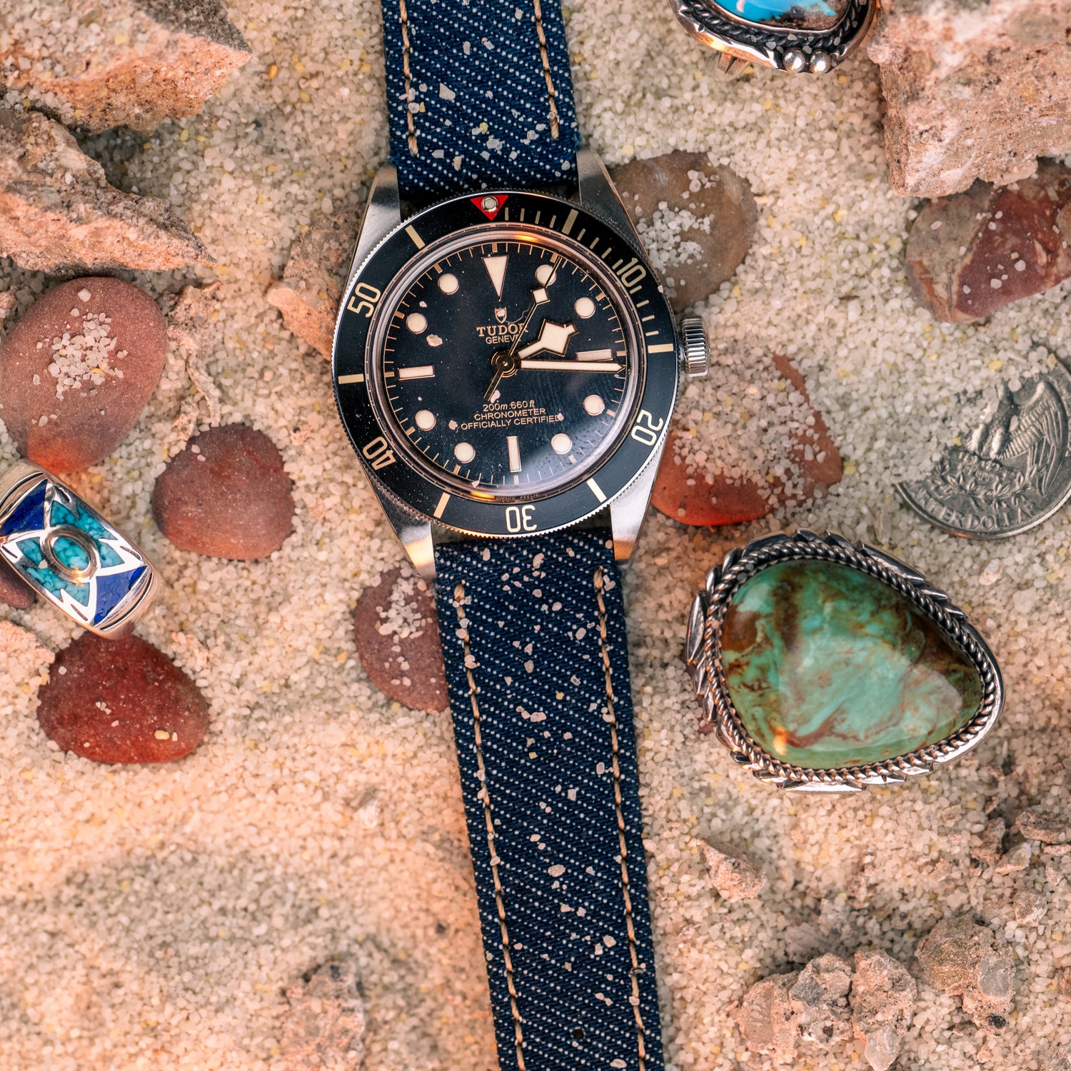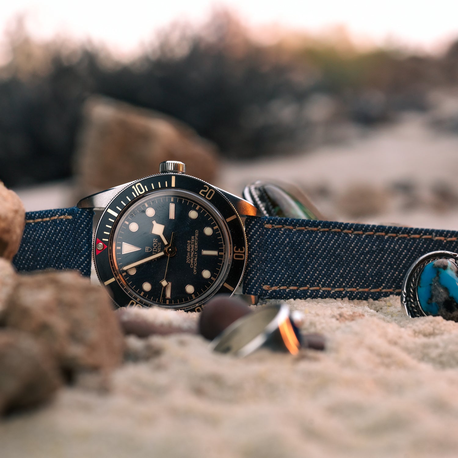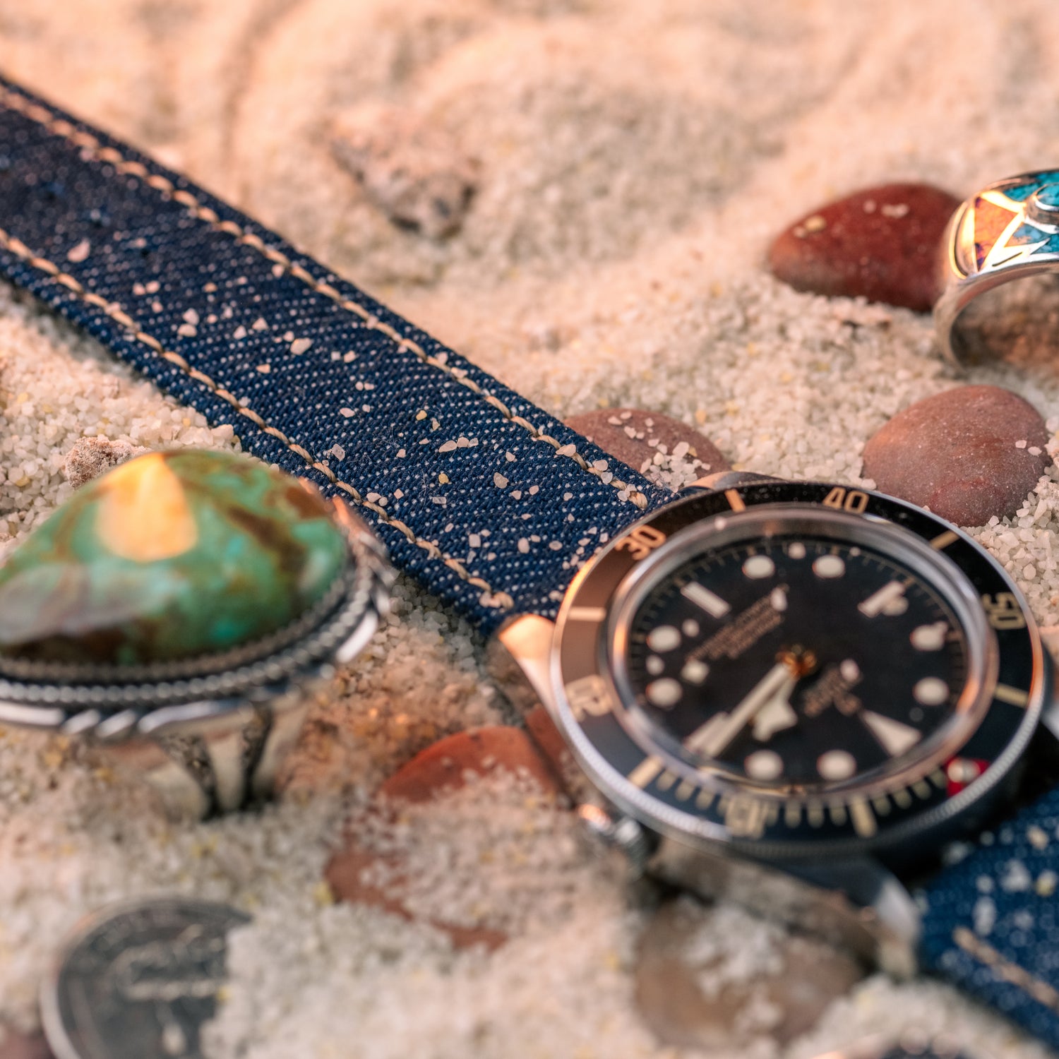 Et pour notre bracelet, le Workwear, nous sommes en collaboration avec un importateur situé à Dresden du nom de Selvadge, qui nous a dégotés lui-même une toile denim venant tout droit du Japon de la célèbre maison KUROKI.