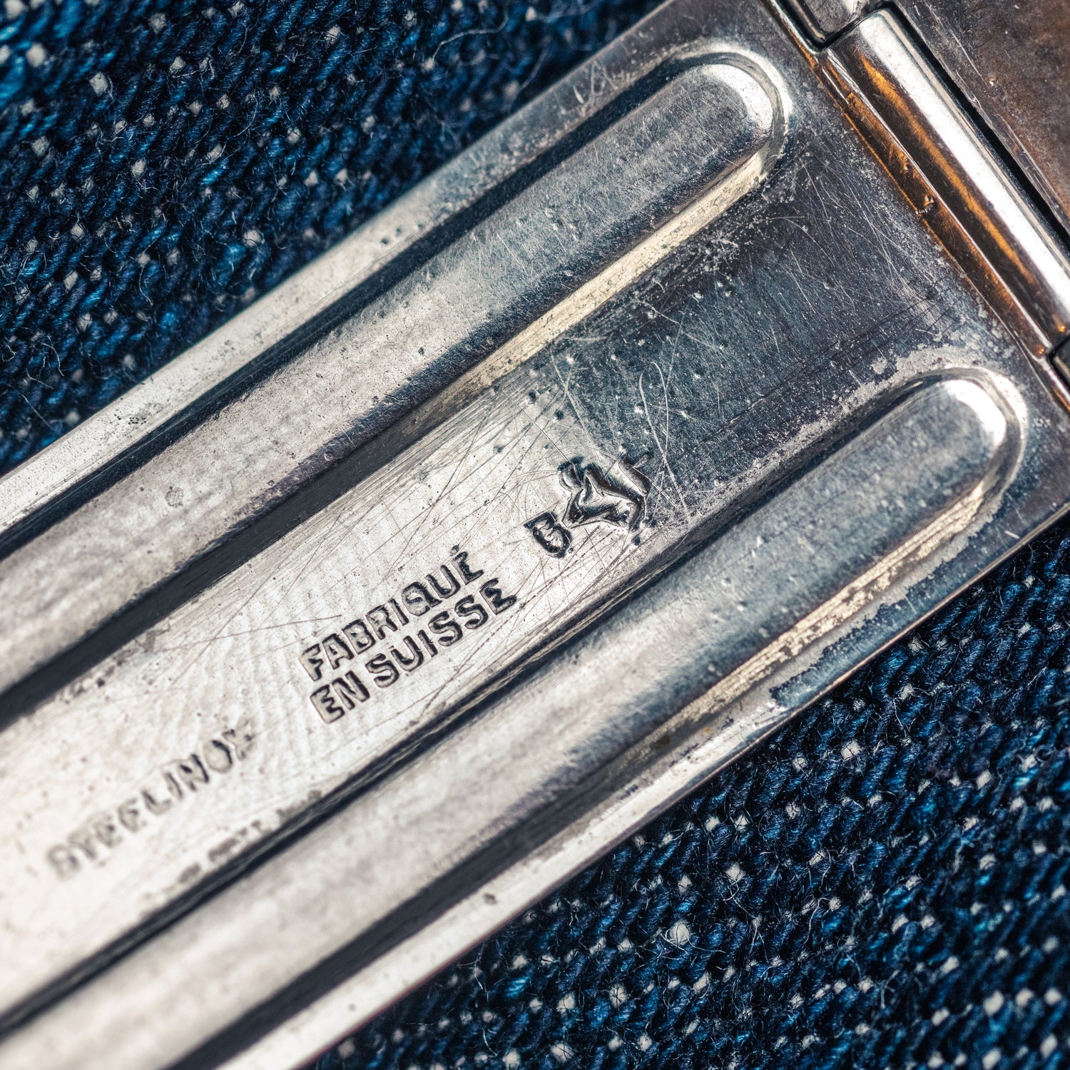La montre est équipée d'un bracelet acier Gay Frères d’origine, avec end-links parfaitement cohérents et matching.