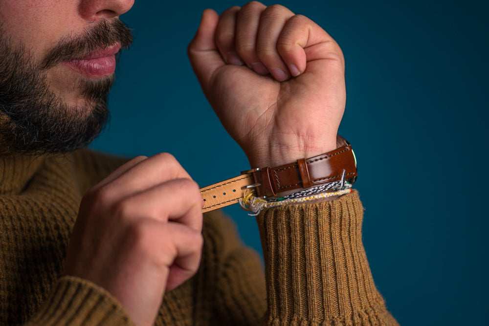 Le bracelet Cut, est un bracelet qui s'exprime à 100% grâce à son cuir Shell Cordovan. Tout en paradoxe, sa complexité en matière de teinte et son aspect simple et raffiné, font de ce bracelet un atout parfait pour redonner une pincée d’élégance à votre montre sportive, que de sublimer la plus élégante pièce de votre collection !