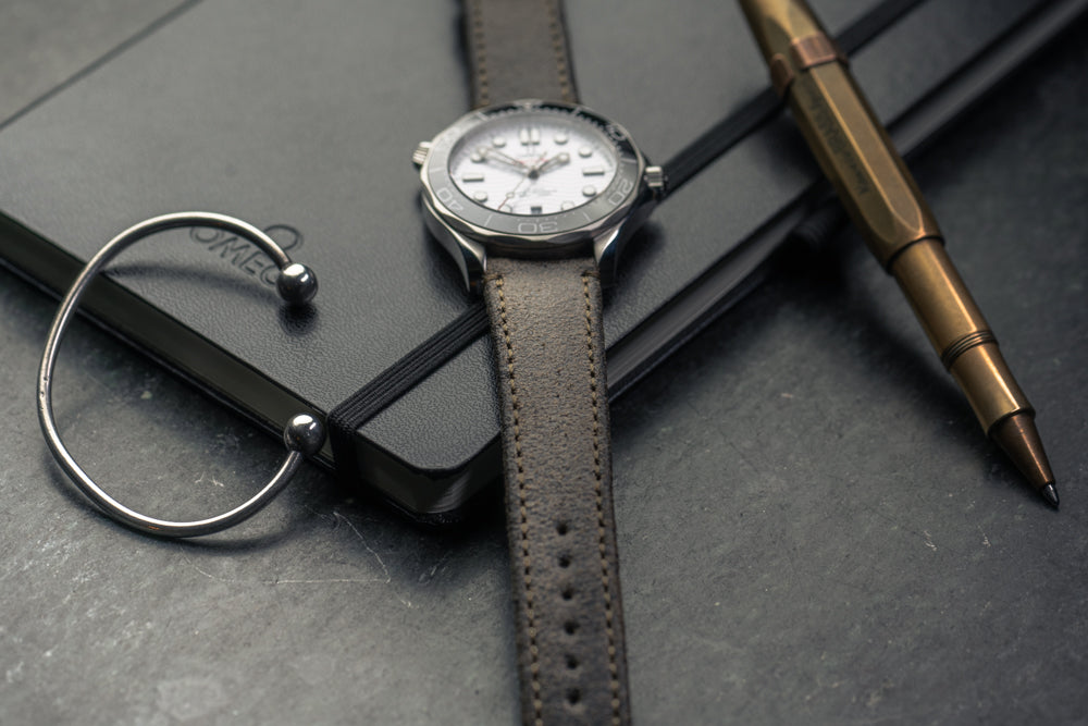 Entre sa doublure en caoutchouc de couleur bleue et son cuir de veau d'une couleur gris tirant légèrement sur le marron, ce bracelet Roots a été pensé et conçu pour assumer pleinement son identité aussi bien d'un point de vue esthétique que technique.
