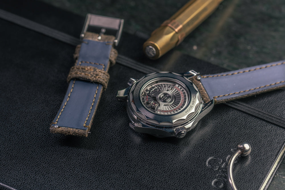 • Logo WatchArch ainsi que la mention "cousu main" sont déposés sur le bracelet