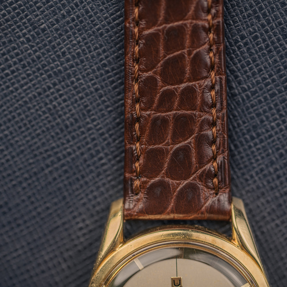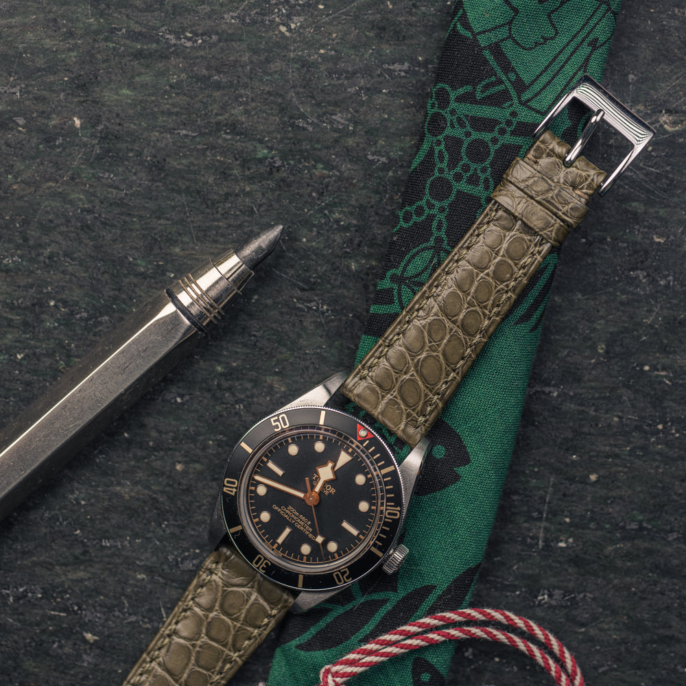 Pour ce Sprezzatura, nous voulions un bracelet qui exprime à la fois l'élégance que procure le cuir d'alligator mais en voulant casser sa rigidité aussi bien en matière de confort, que d'aspect.