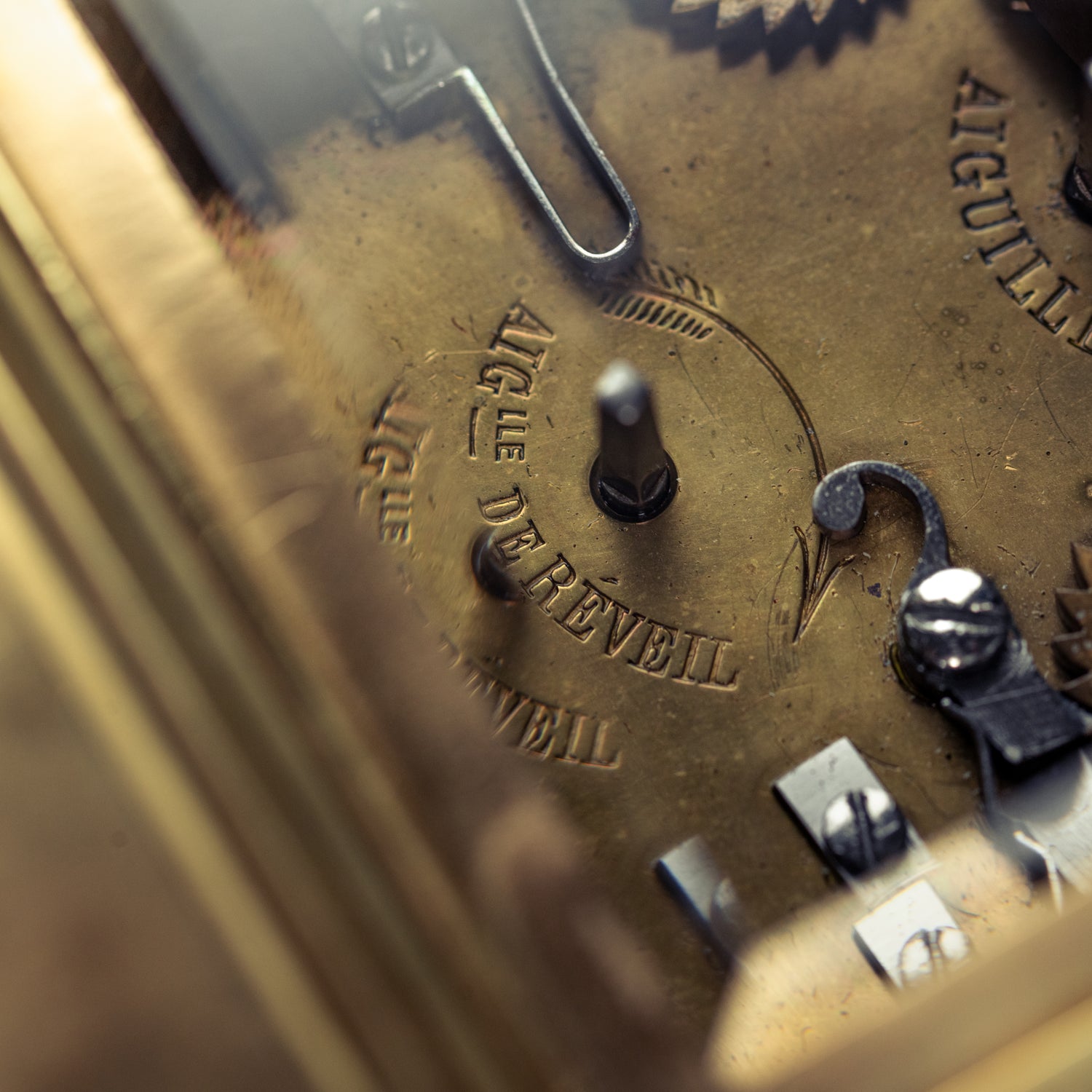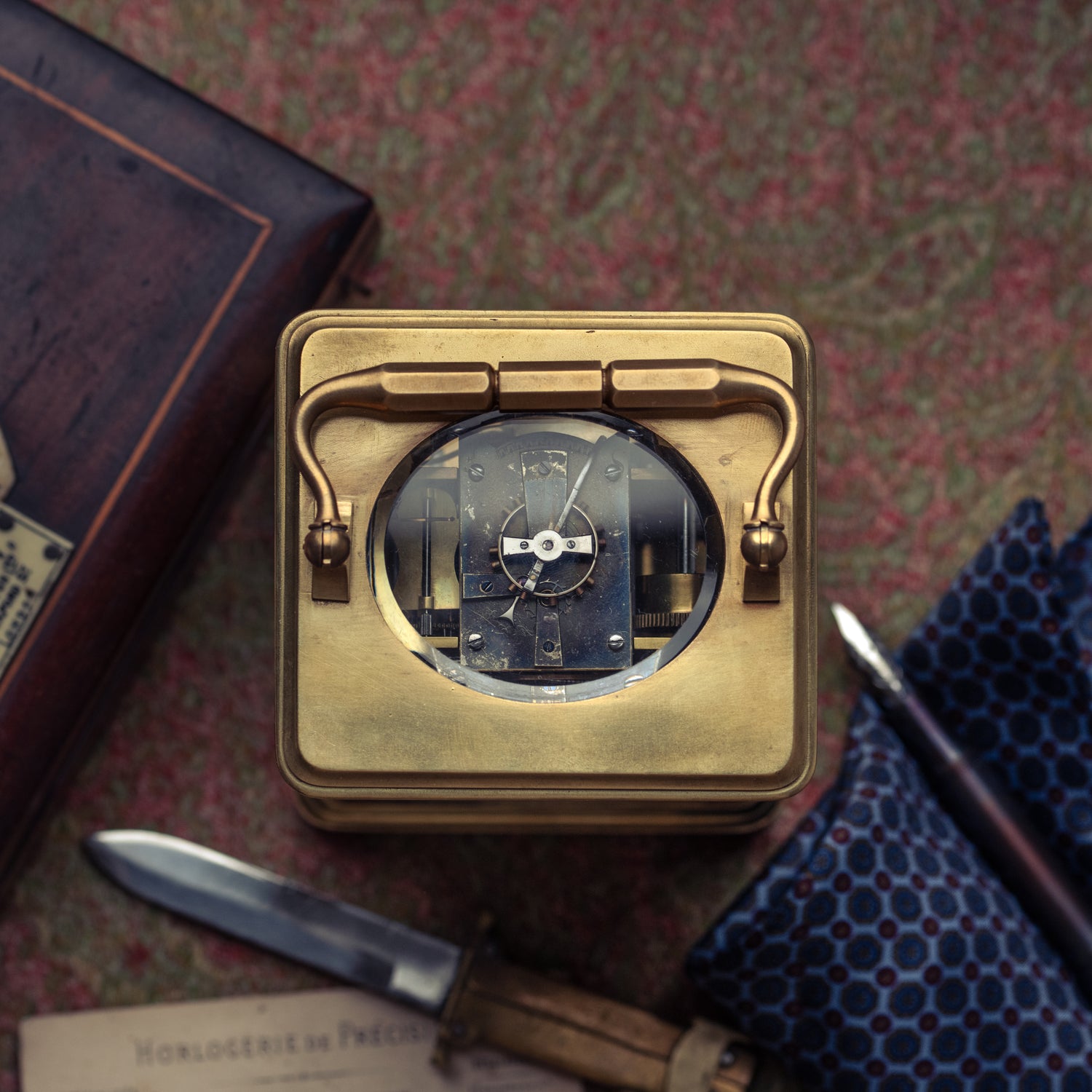 Il s'agit d'une grande pendule de voyage, dite d'officier avec la fonction réveil matin.