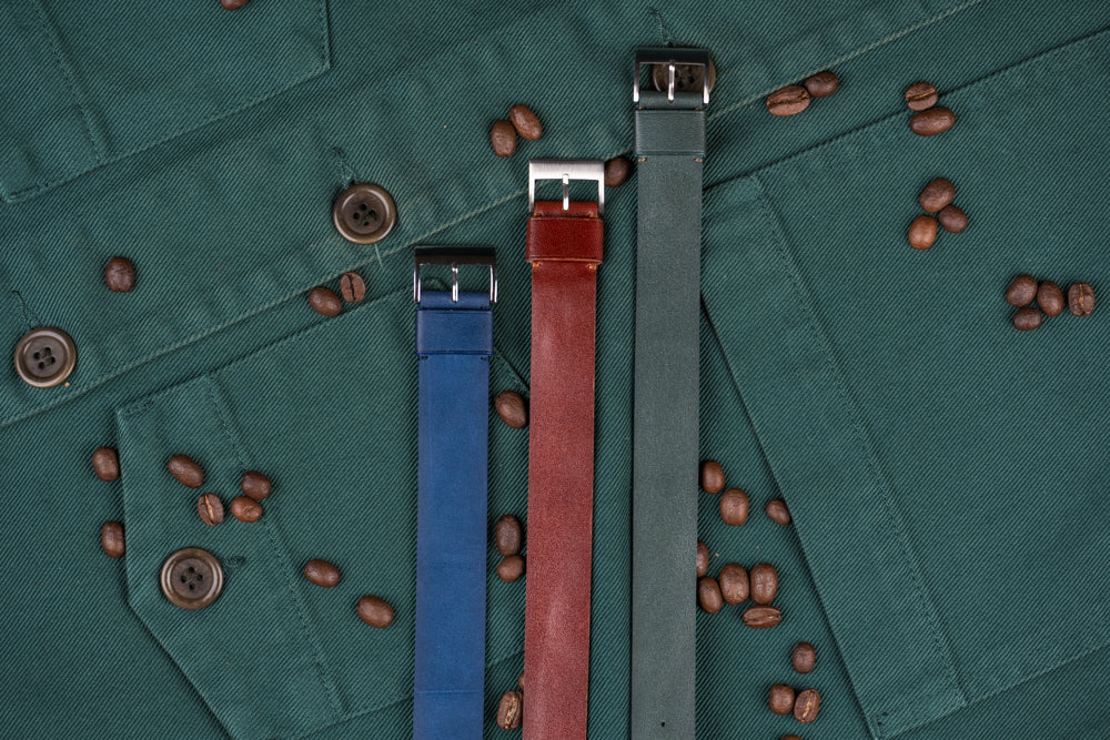 Entre un bracelet NATO et un bracelet en cuir. La lanière Odysseía est un bracelet qui réunit le meilleur de ces deux mondes. Vous profitez des avantages du NATO, une spontanéité absolue et une sécurité durant vos aventures, tout en conservant les caractéristiques d'un cuir de grande qualité, soit une patine qui apparaitra avec le temps.