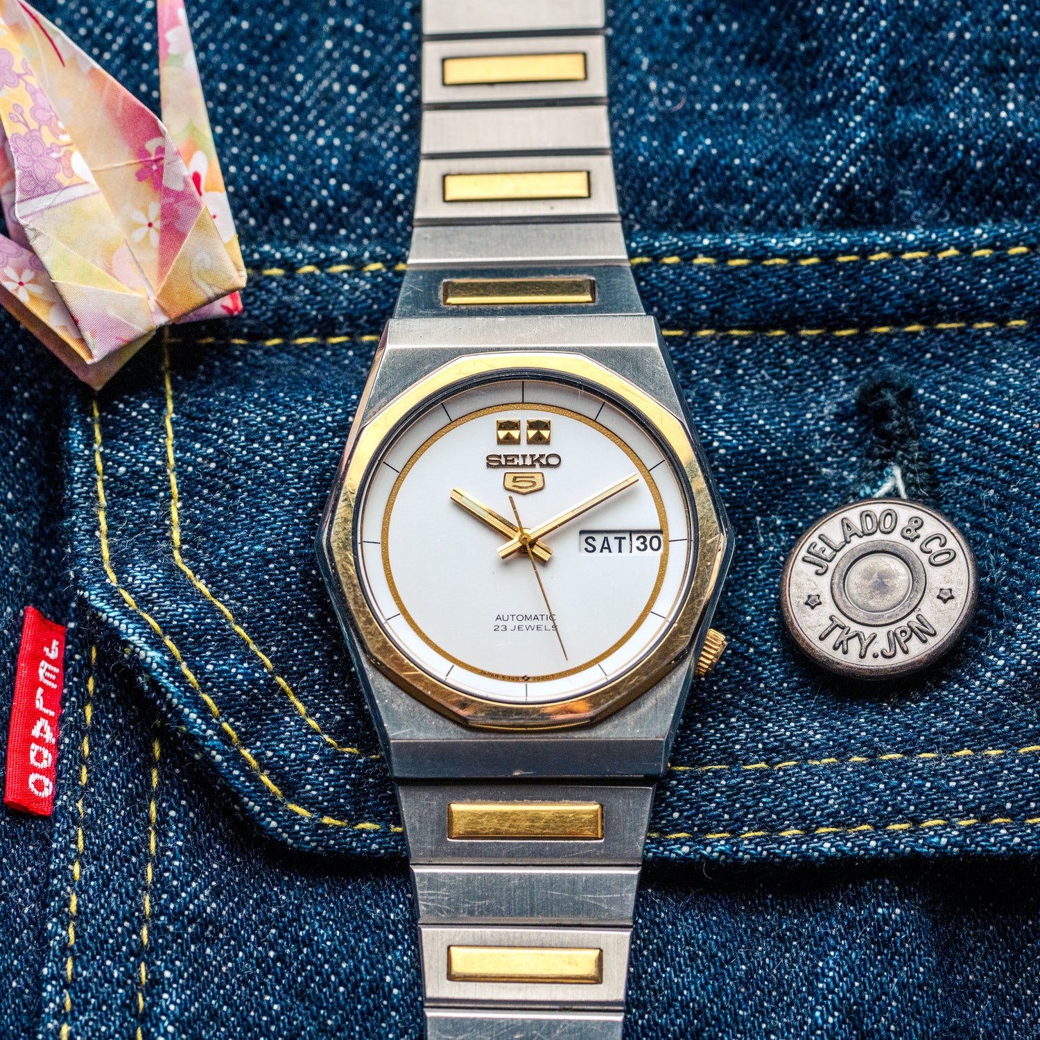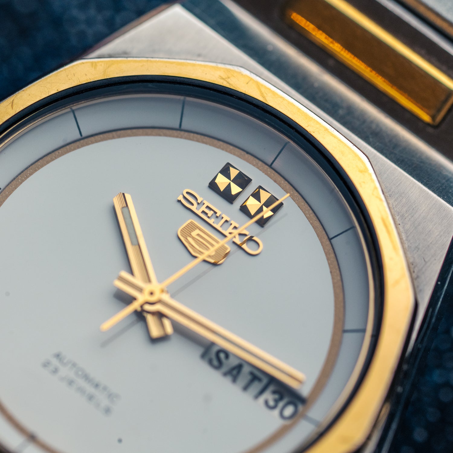 Cette Seiko 5 incarne parfaitement l’esthétique two-tone de la fin des années 70.