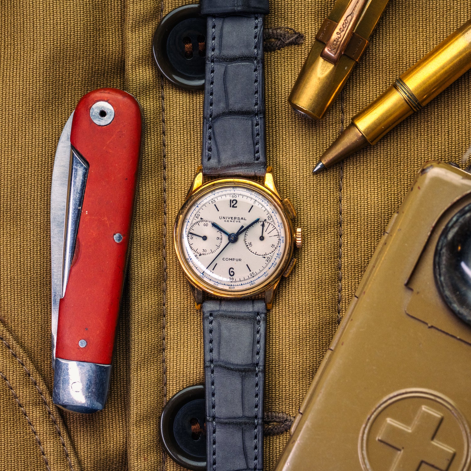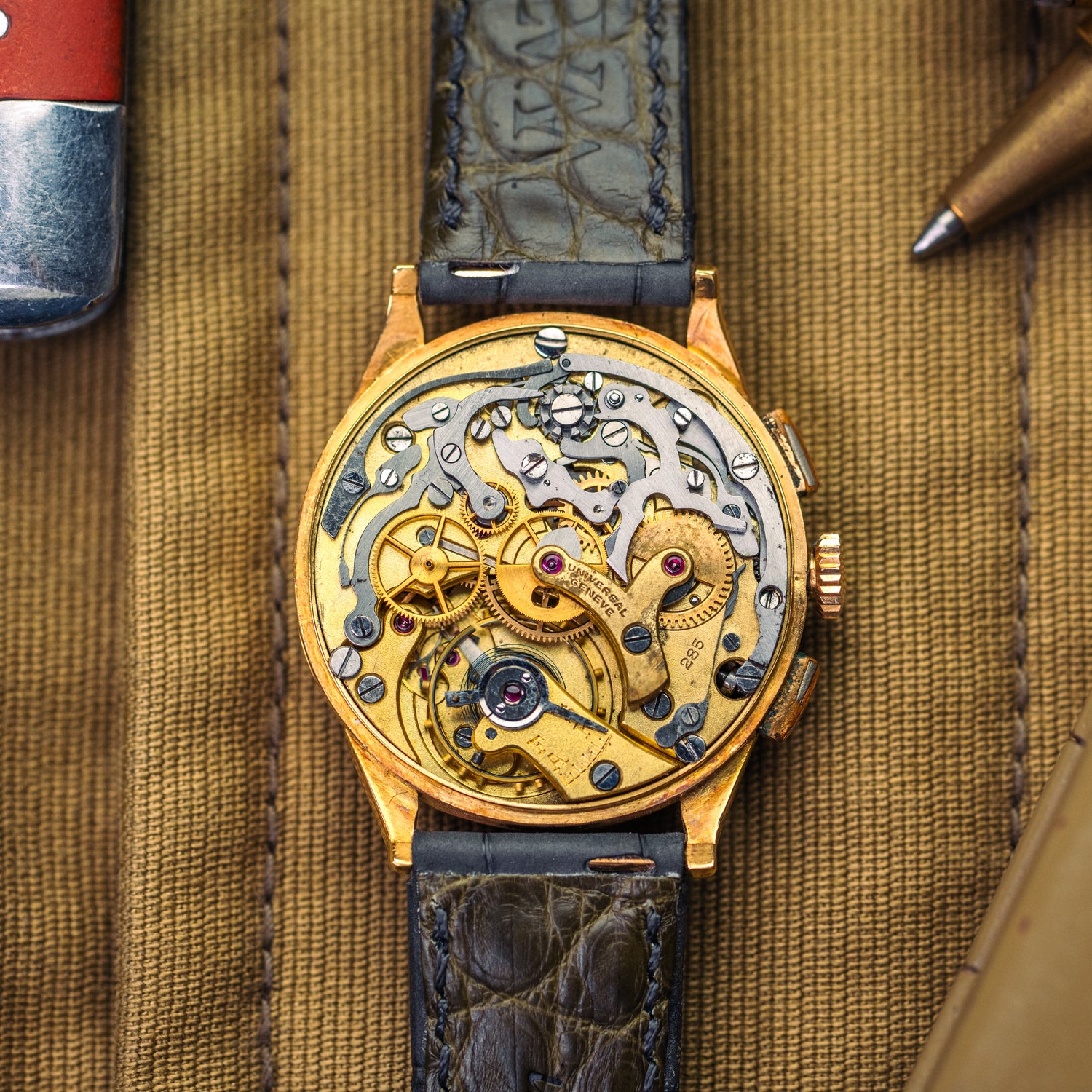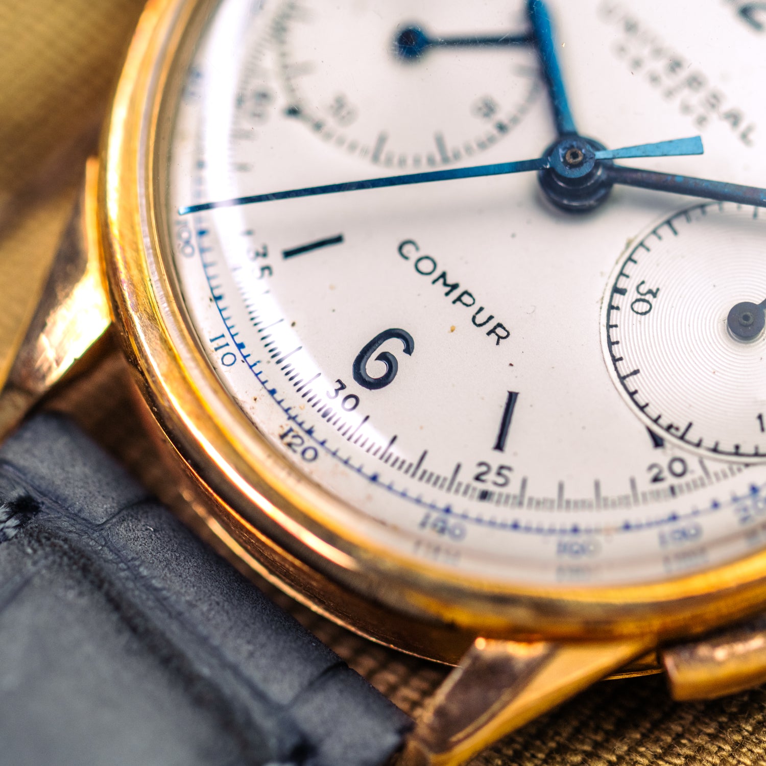 Vous n'êtes pas en présence d'une "simple" Universal Genève... Puisqu'il s'agit du modèle COMPUR en or jaune 18 carats !