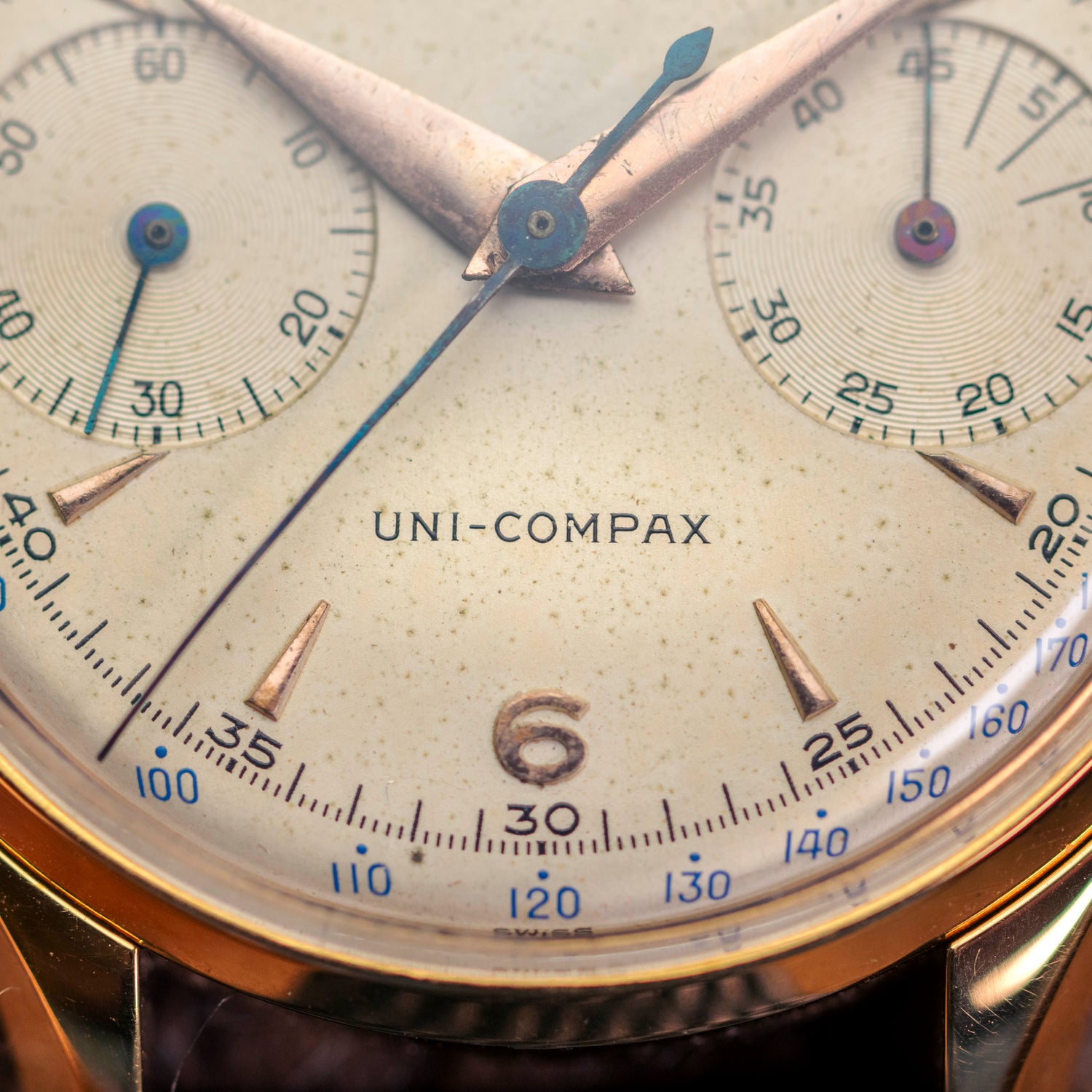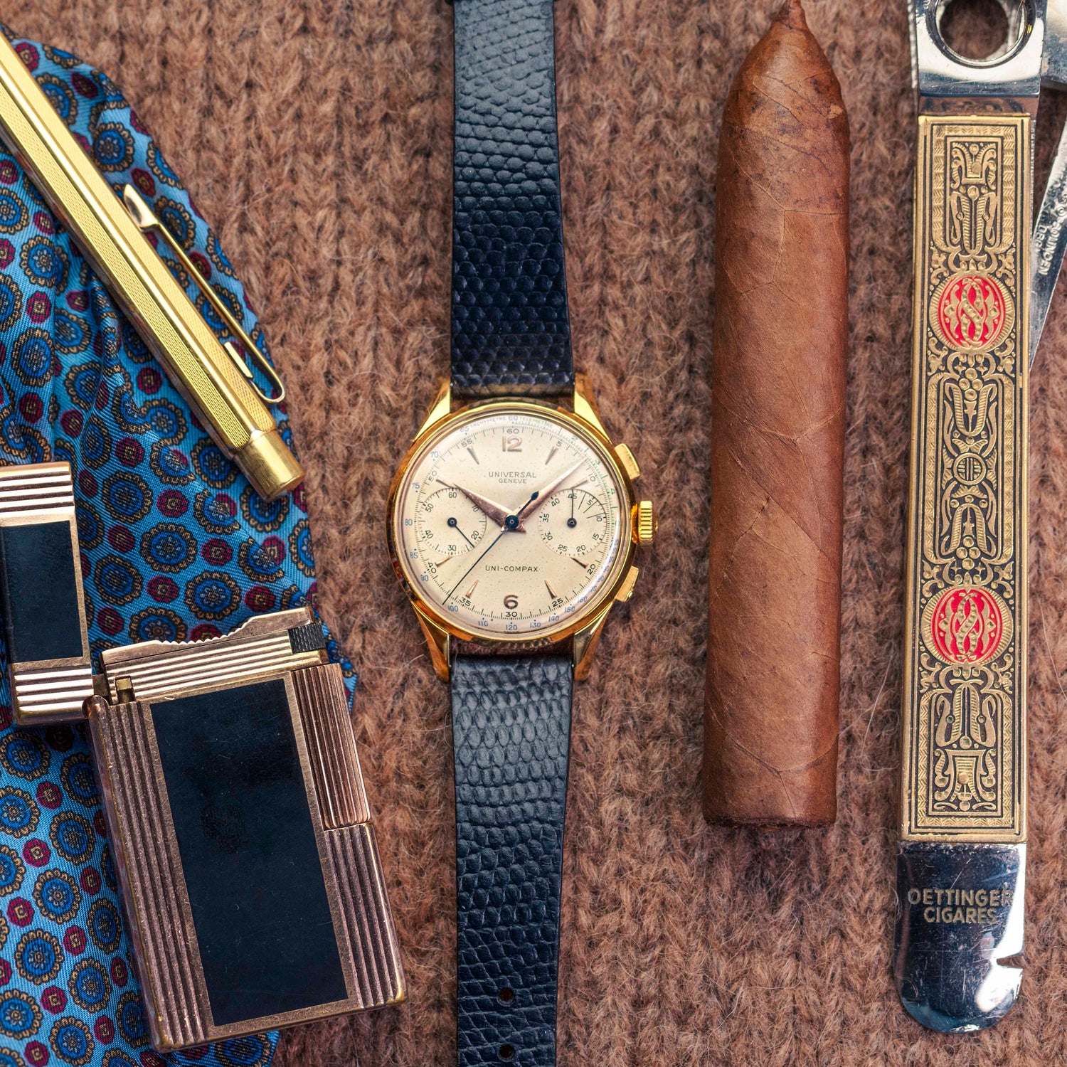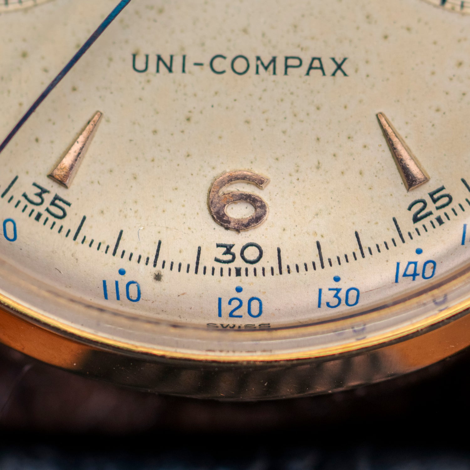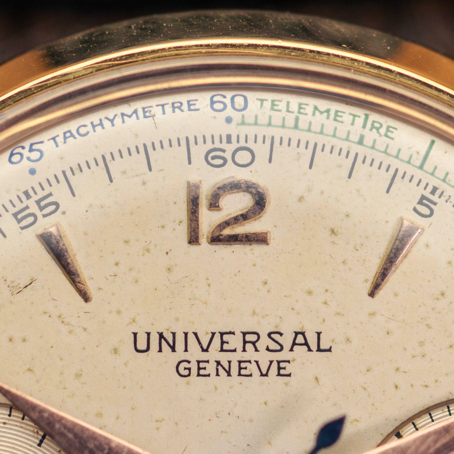 Il existe des chronographes qui résument à eux seuls tout ce que l’on aime dans l’horlogerie vintage. Cette Uni-Compax plaquée en or jaune et signée Universal Genève en fait clairement partie.